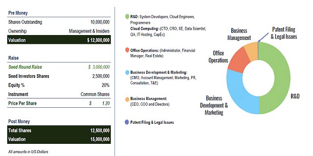 El socio de Mundo está recaudando 3 millones de dólares en capital para el 20% de la empresa, a una valoración previa de 12 millones, con una inversión de 3 millones de dólares, los ingresos se utilizarán de la siguiente manera: